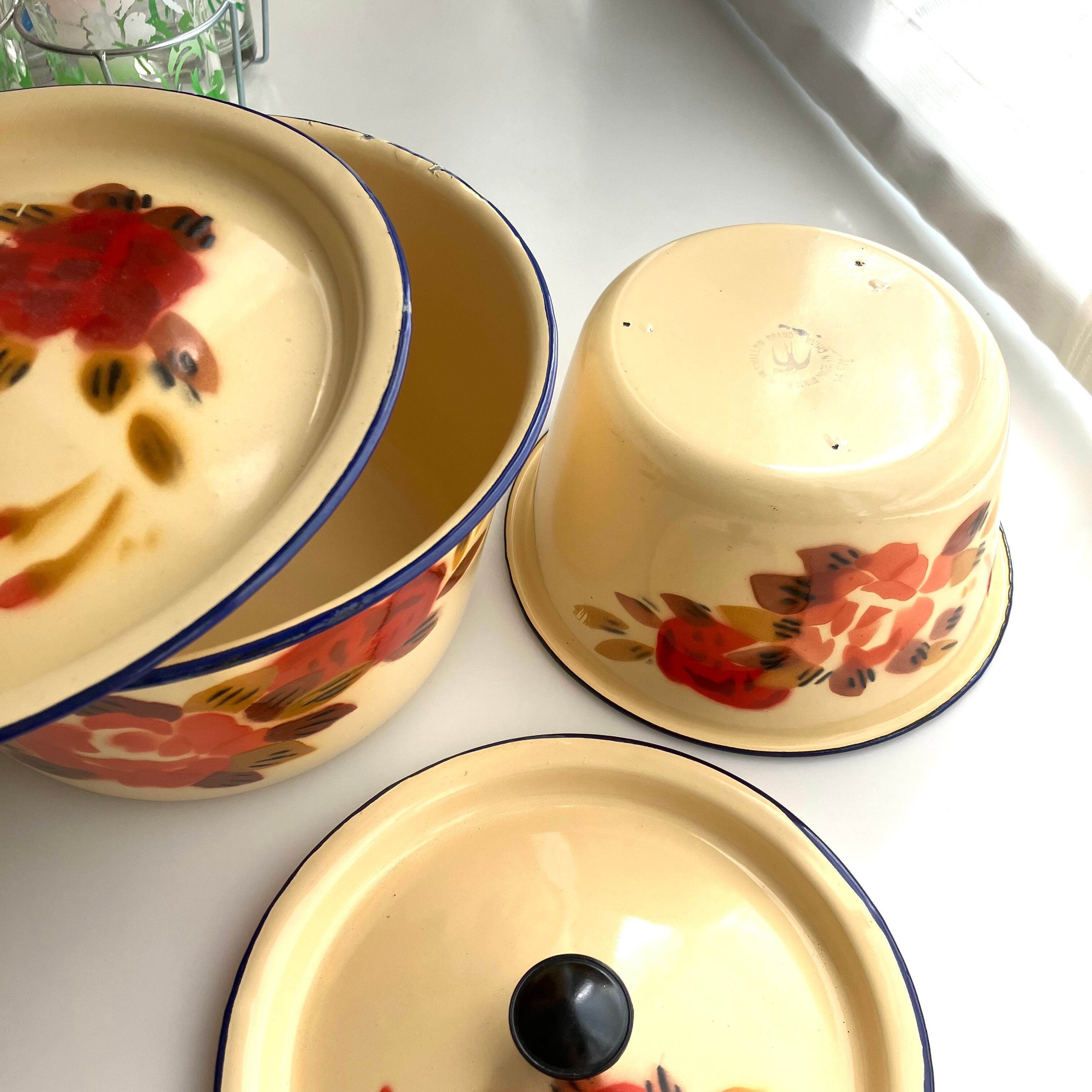 レトロな花柄のホーロー容器です。