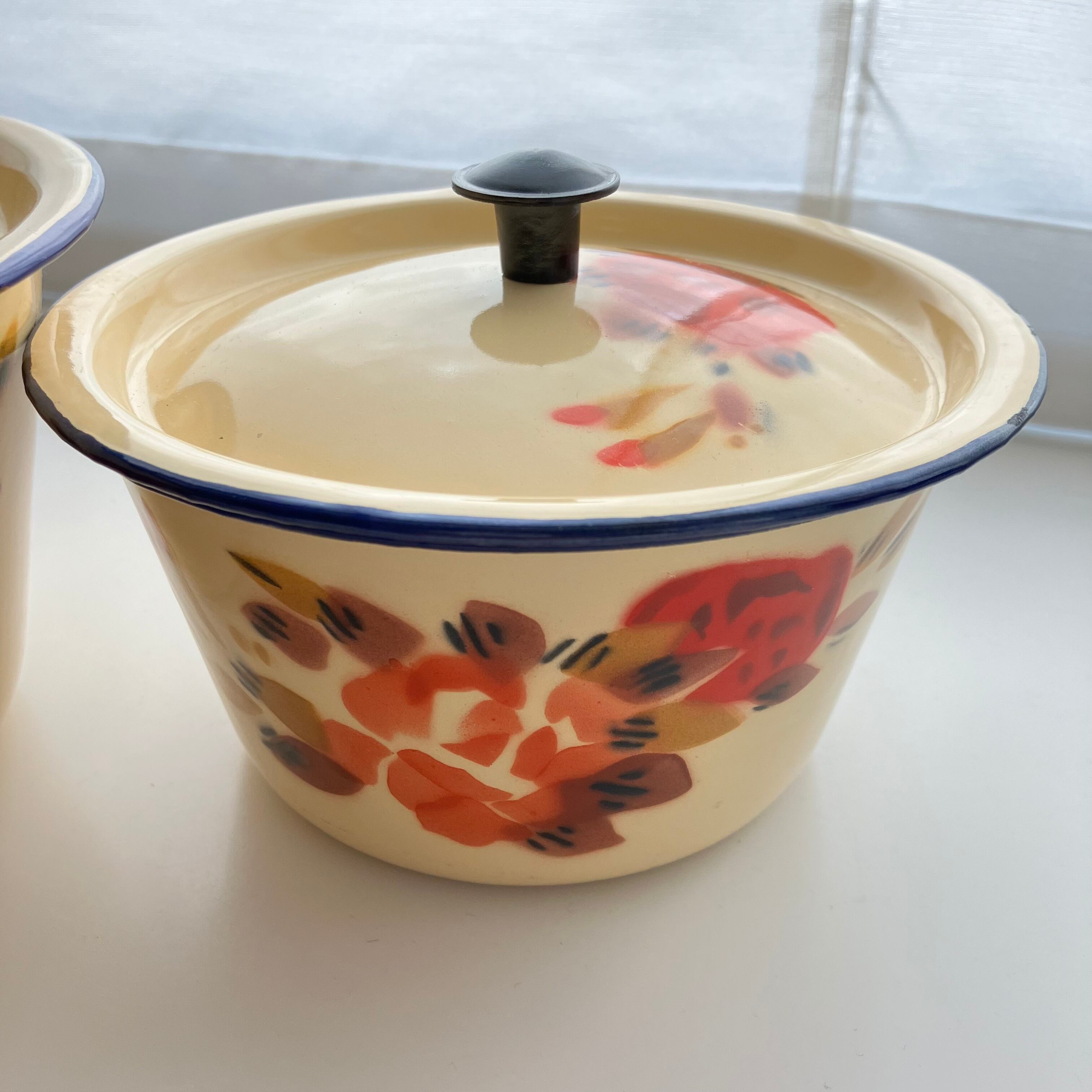ホーロー 蓋付き 花柄